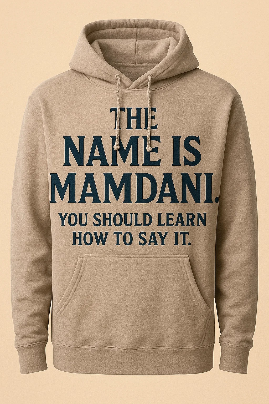Show off your style and personality with the “The Name is Mamdani” Hoodie, a re-created piece in brown and white. Inspired by the iconic quote, this hoodie is perfect for casual wear, lounging, or making a bold statement wherever you go.