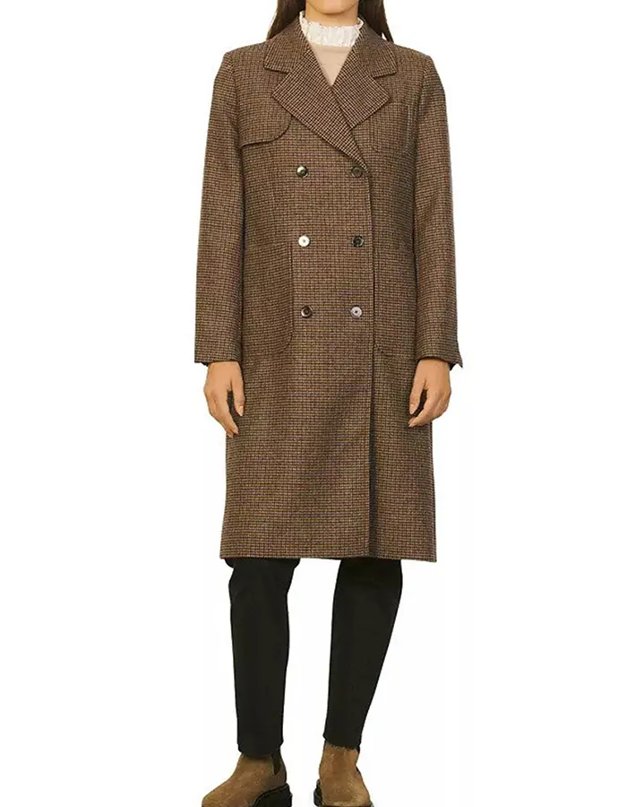 And one of the warmest as well as the most stylish coat that we think you can wear this winter is The Resident S06?Outfits right here. The idea behind this coat is taken from an American medical and drama TV show called The Resident. This coat was featured in the sixth season of the show, and it was worn by one of the featured characters of the show named, Kincaid “Cade” Sullivan. The role of Kincaid Sullivan is played by an actress named Kaley Ronayne. This Kincaid Sullivan-inspired coat has a beautiful toned-down brown color and is made from the best wool fabrics to make sure it can last a lot of years for you. We have made this Kaley Ronayne The Resident Season 6 Kincaid Sullivan Brown Plaid Coat comfortable to wear by adding soft and smooth viscose lining inside it. This coat features a button on the front for closure and has a notch lapel-style collar that looks good. This coat has full-length sleeves that end on open hem cuffs to keep your arms warm this winter. This coat has two side pockets, two inner pockets, and two chest pockets to keep your stuff.