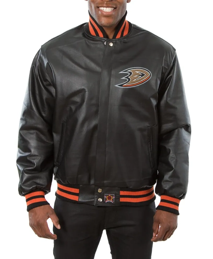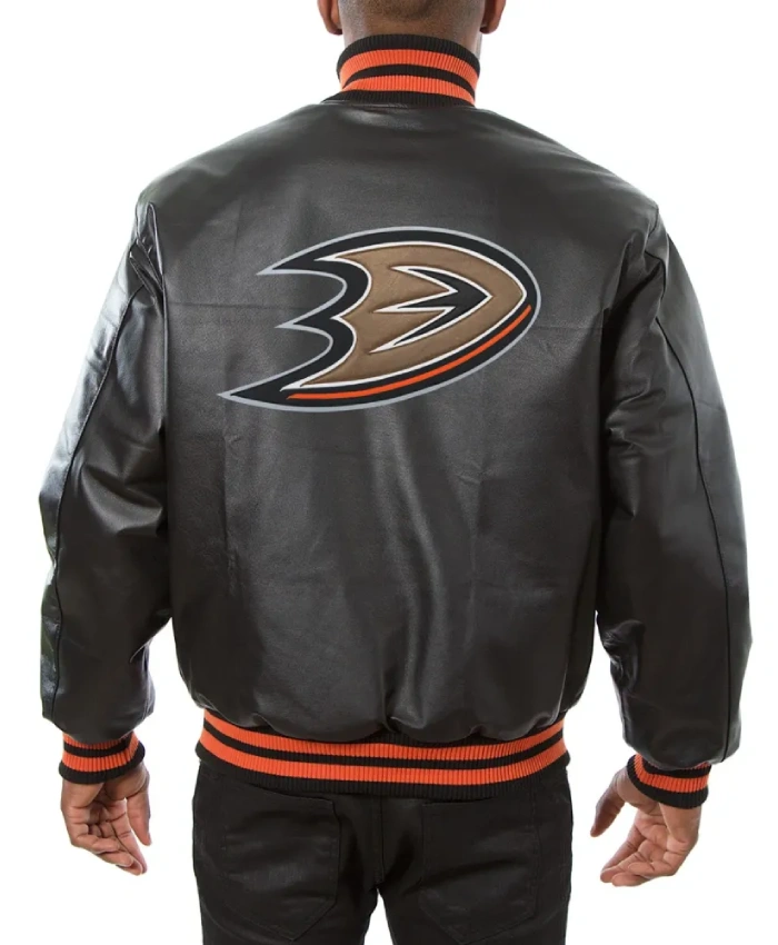 Anaheim Ducks Black Leather Varsity Bomber Jacket