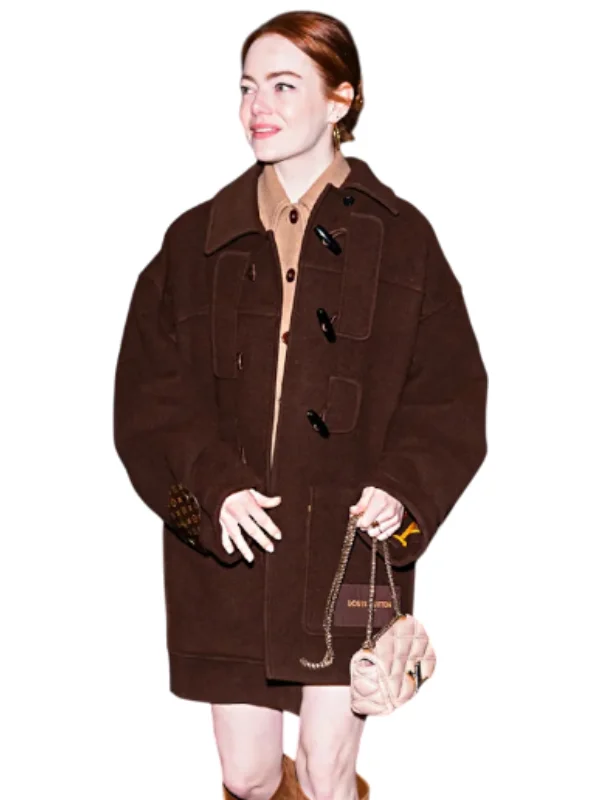 Emma Stone Brown Coat, inspired by the actress’s timeless and elegant fashion sense. Made from premium-quality materials, this coat offers a refined look, perfect for winter outings, events, or everyday styling. Its rich brown color and classic silhouette make it a versatile addition to any wardrobe.