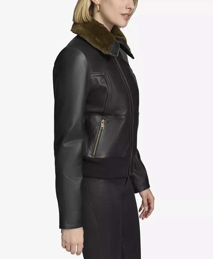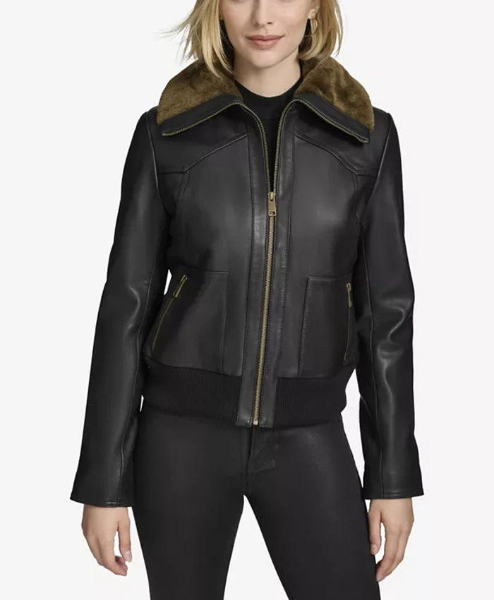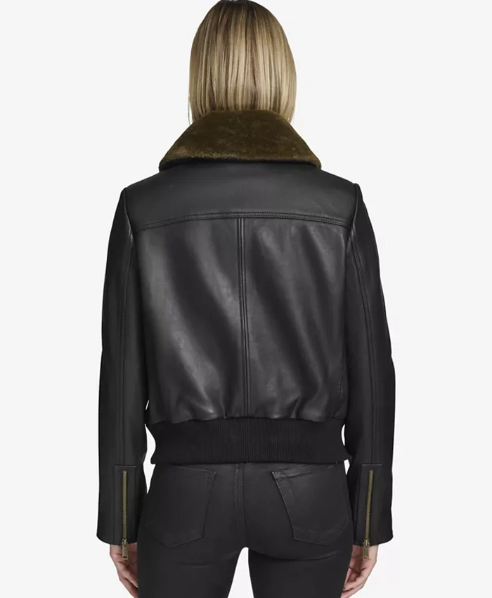 Become a fashion inspiration with our Women’s Aviator Black Bomber Leather Jacket! If you are tired of following the A-listed celebrity style or fashion freaks and desire to become a trendsetter, then black leather jacket era is all right to help you with that. This time, our NEW ARRIVAL collection has brought something attention-grabbing that also strikes on the latest trend directly from the runway fashion, which is our Women’s Aviator Black Bomber Leather Jacket! That encourages you to stand out and embrace your fashion-forward spirit with this stunning piece of clothing.