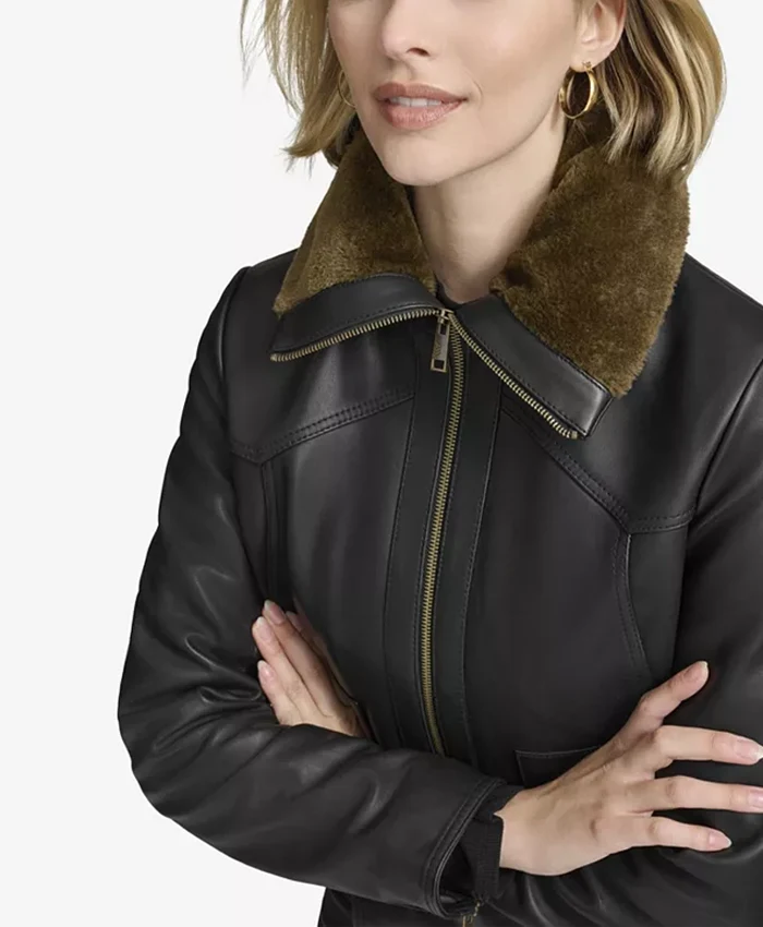 It is fabricated with high-end leather and viscose lining that boosts its durability and comfort and makes it an ideal piece that lasts longer in your wardrobe. Besides that, it is as functional as stylish with its fur collar, zipper closure, two outside and inside pockets, zipper cuffs, and rib-knitted waist that all enhance its practicality while making it an incredible piece to carry on all occasions. So, don’t miss out on the chance to become a fashion inspiration by grabbing our outstanding crafting now!