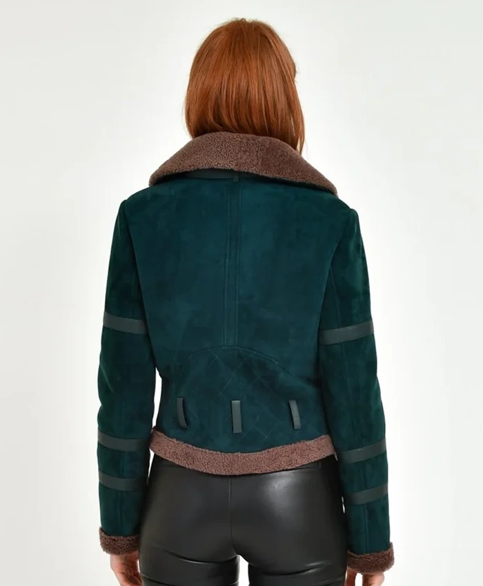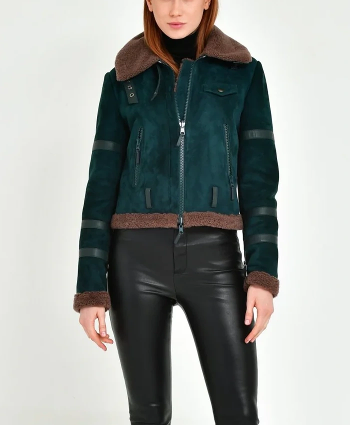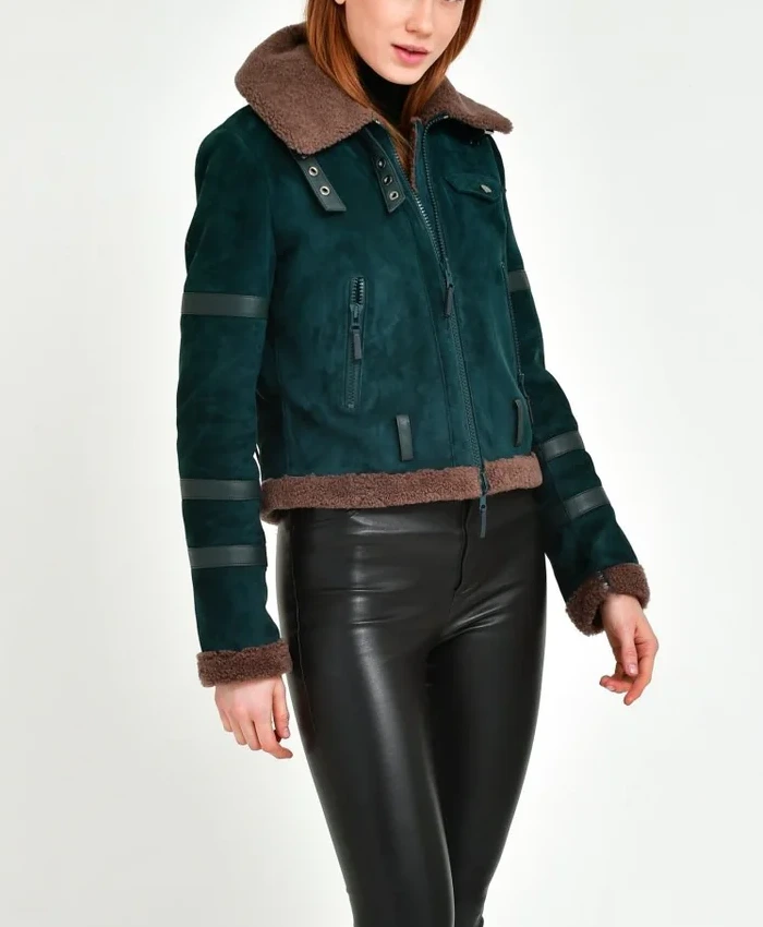 B3 Leather Bomber Green Shearling Coat For Women’s