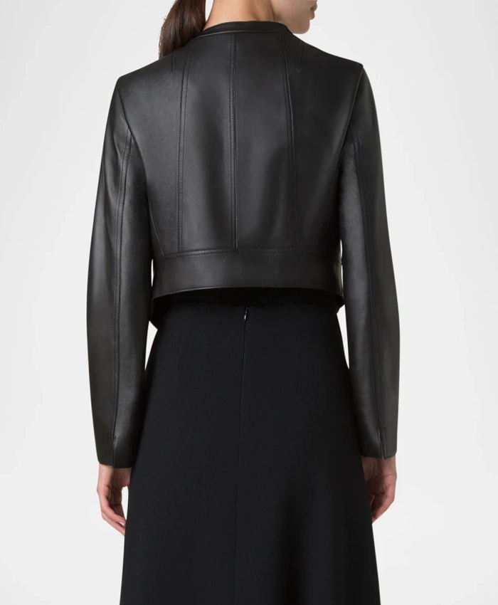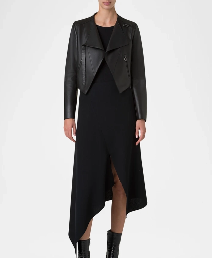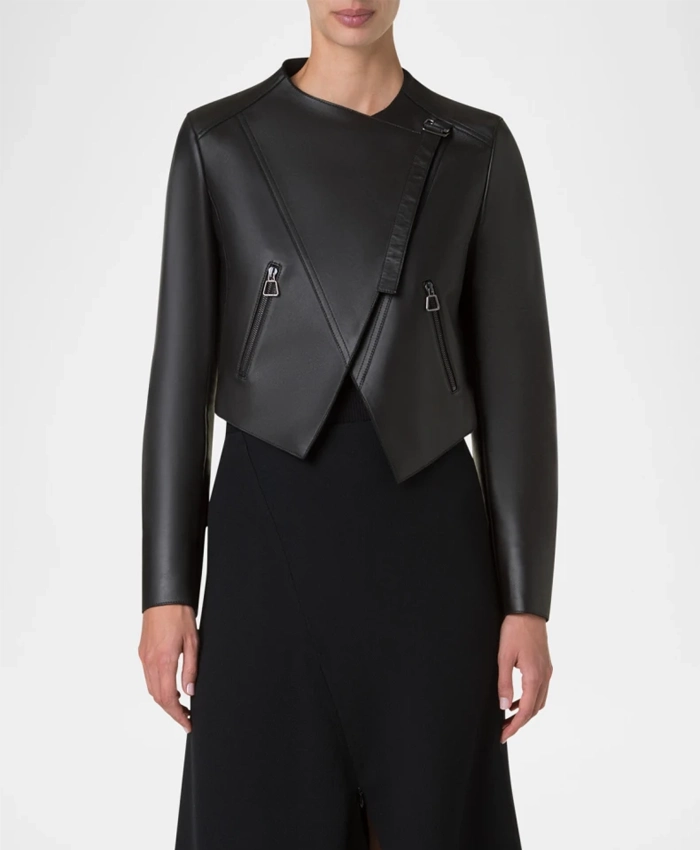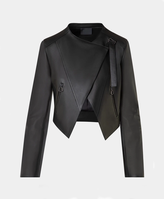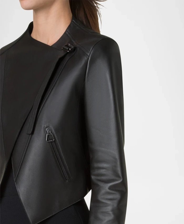 Women’s Biker Jacket With Black Lambskin Leather And Pockets For Sale