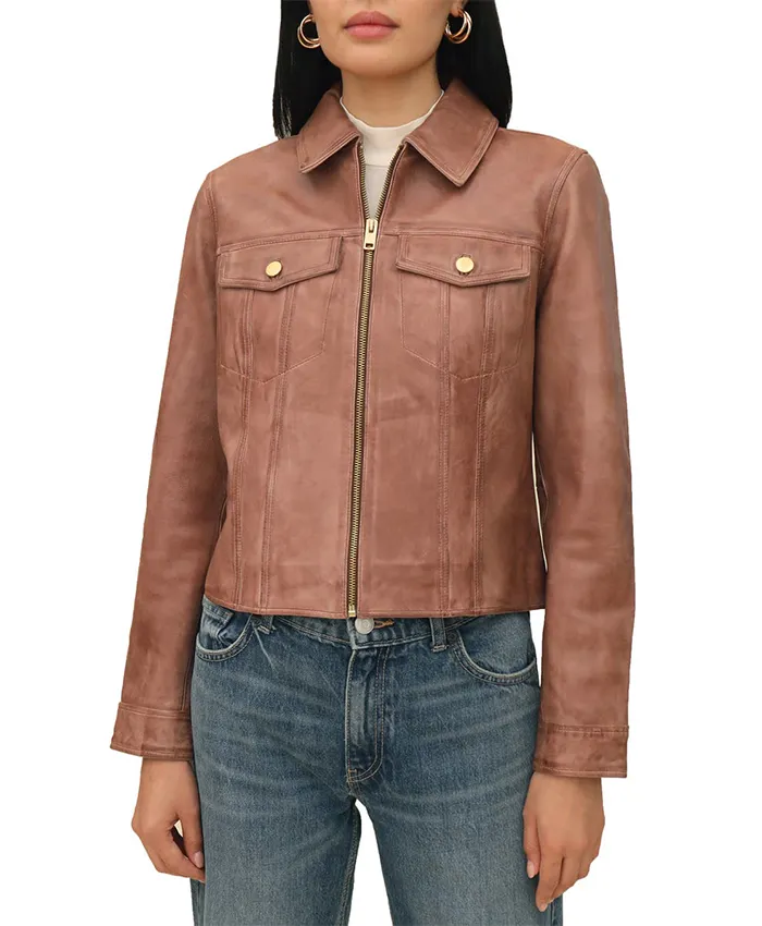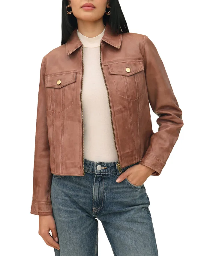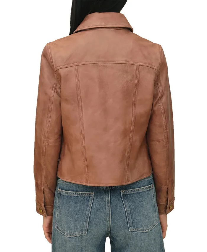 Made from real leather, this Brown Leather Trucker Jacket is the trending pic that is a perfect fit for winter and autumn. Its mind-blowing versatility and top-notch stitching are next-level and remarkable. Further, the traditional Tucker jacket design and the detailing on the exterior make it a must-have piece in your closet. That sets its wear apart from others; also, its smooth viscose lining gives it a faltering fit. To enhance the wearer’s physical appearance and keep her comfortable all day. From beating the chilling winters to giving an appealing and enduring appearance, this brown leather jacket won’t disappoint you.