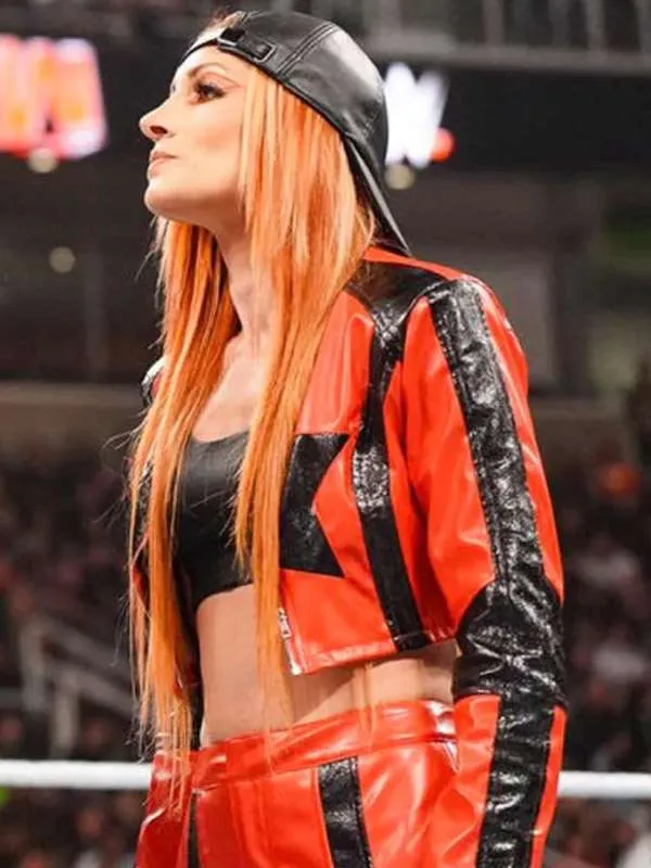 WWE Becky Lynch Red and Black Leather Jacket