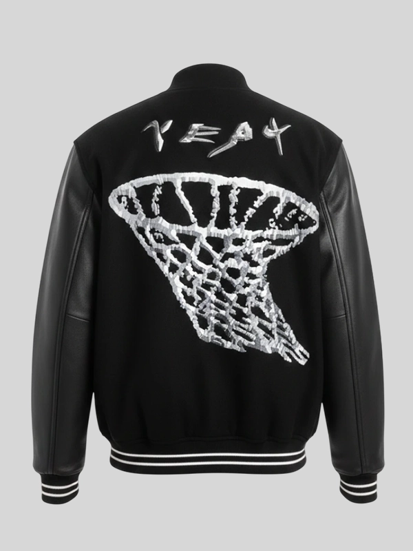 Crafted from a durable wool-blend body and contrast leather sleeves, this varsity jacket offers both comfort and structure. The sleek black design is accented with iconic Nike branding and subtle Yeat-inspired style elements — perfect for those who love statement pieces that stand out. Whether you’re heading to a concert, chilling with friends, or layering over casual outfits, this jacket adds a bold flair to any look.
